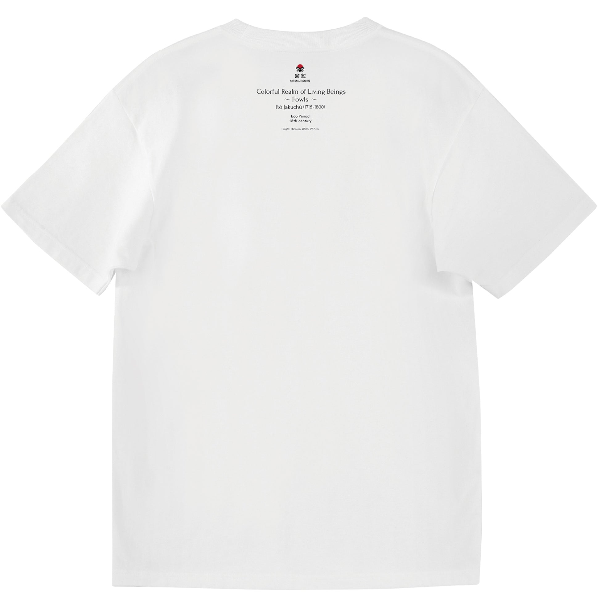 This polychrome painting depicts thirteen roosters rendered vividly in a variety of dynamic poses. The extraordinary precision of the composition overwhelms the viewer. The feathers of all the birds overlap so completely that it becomes impossible to distinguish which rooster they belong to.